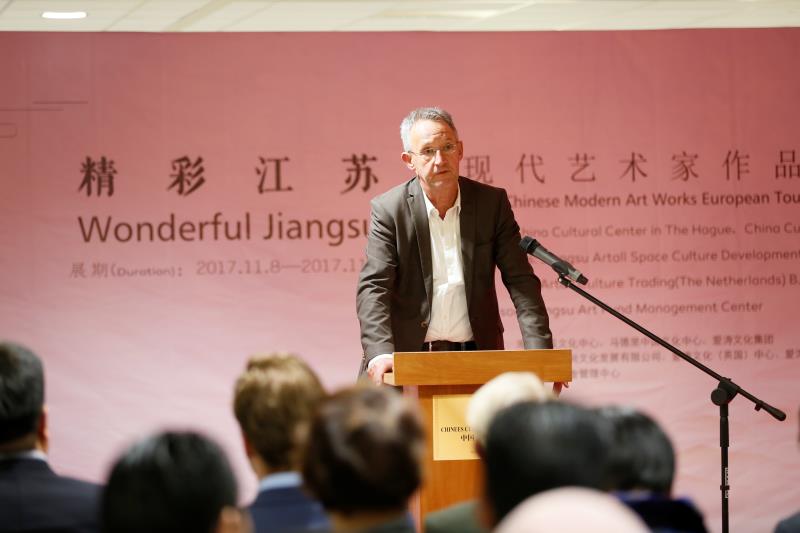 為增強(qiáng)中荷文化交流,推進(jìn)中華優(yōu)秀美術(shù)作品國際化,由海牙中國文化中心、馬德里中國文化中心和愛濤文化集團(tuán)聯(lián)合主辦,江蘇藝術(shù)基金立項(xiàng)資助的《精彩江蘇——2017現(xiàn)代藝術(shù)家作品歐洲巡展》于荷蘭當(dāng)?shù)貢r(shí)間2017年11月8日,在海牙中國文化中心隆重開幕。