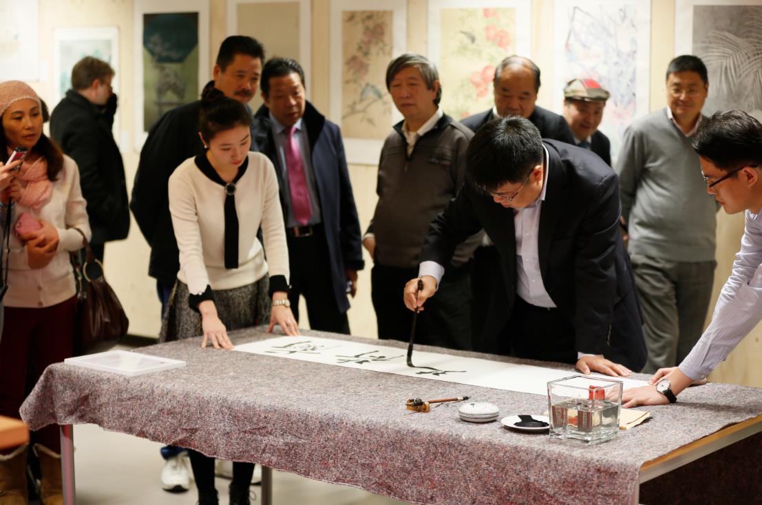 陳日彪公參在致辭中說,“很榮幸也很高興和大家一起成為現(xiàn)代藝術(shù)家作品歐洲巡展的第一批觀眾。海牙中國文化中心是中國文化海外傳播與交流的重要窗口,承擔(dān)著開展文化活動(dòng)、教學(xué)培訓(xùn)、思想交流和信息服務(wù)這四大職能。也是加深中荷兩國人民互相理解和信任的重要平臺;希望經(jīng)常能與中、荷兩國藝術(shù)家們在海牙中國文化中心相聚,一同品味中國文化的美好,推動(dòng)中荷文化交流互鑒。”